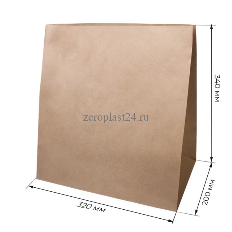 Пакет бумажный без ручек на вынос, 32*20*34