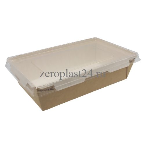 800 мл Контейнер бумажный с прозрачной крышкой 207х127х55 мм белый/крафт 1/50 шт /200