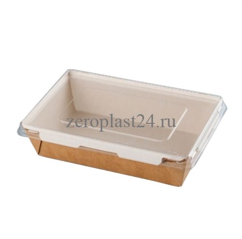 1000 мл Контейнер бумажный с прозрачной крышкой 222х162х55 мм крафт/белый 1/50 шт/300 (55864)