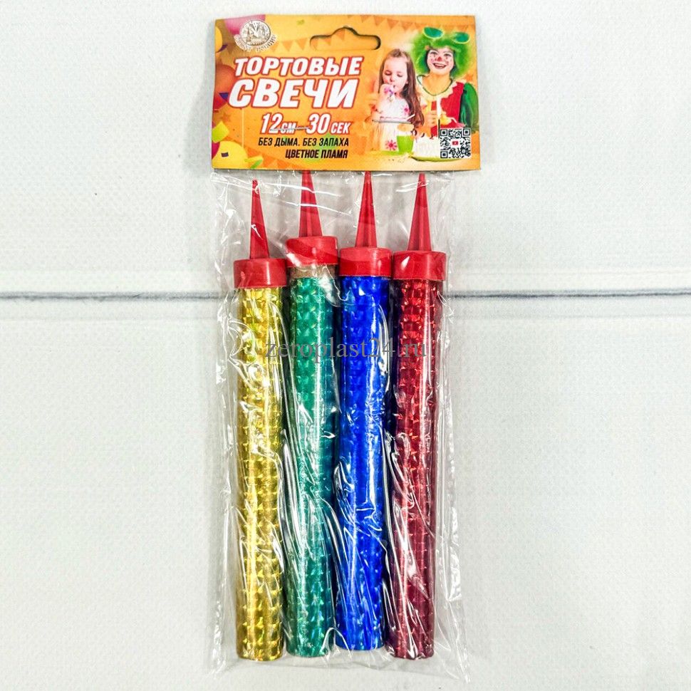 Свечи для торта "Фонтан" набор (4 шт.) 12см 30(±5%)сек (микс)