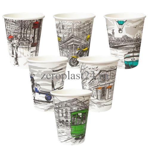 Стакан бумажный 1сл. SP12, 300/355мл "Биг Сити Лайф" микс 5 дизайнов