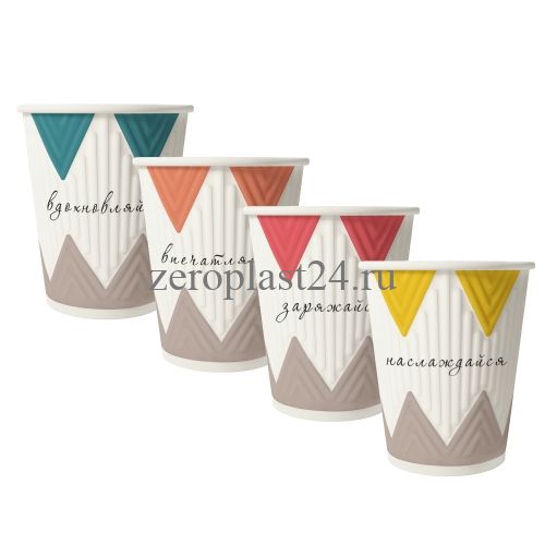 Стакан бумажный 2сл. NDW12, 300/355мл "Кофе-пауза" микс 4 цвета Для горячих напитков СкандиПакк (х40/800)