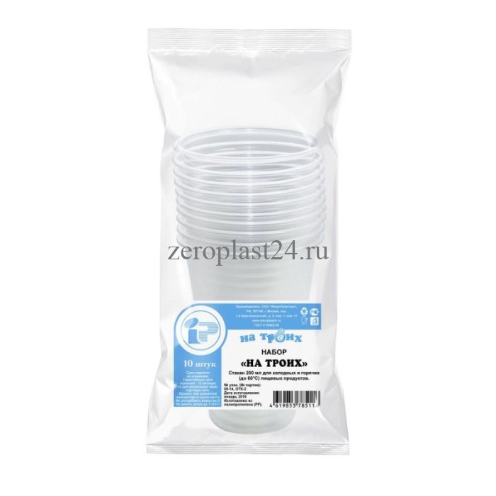 Стакан 200 мл белый/прозрачный, 10 шт.Набор "На троих" 1/140