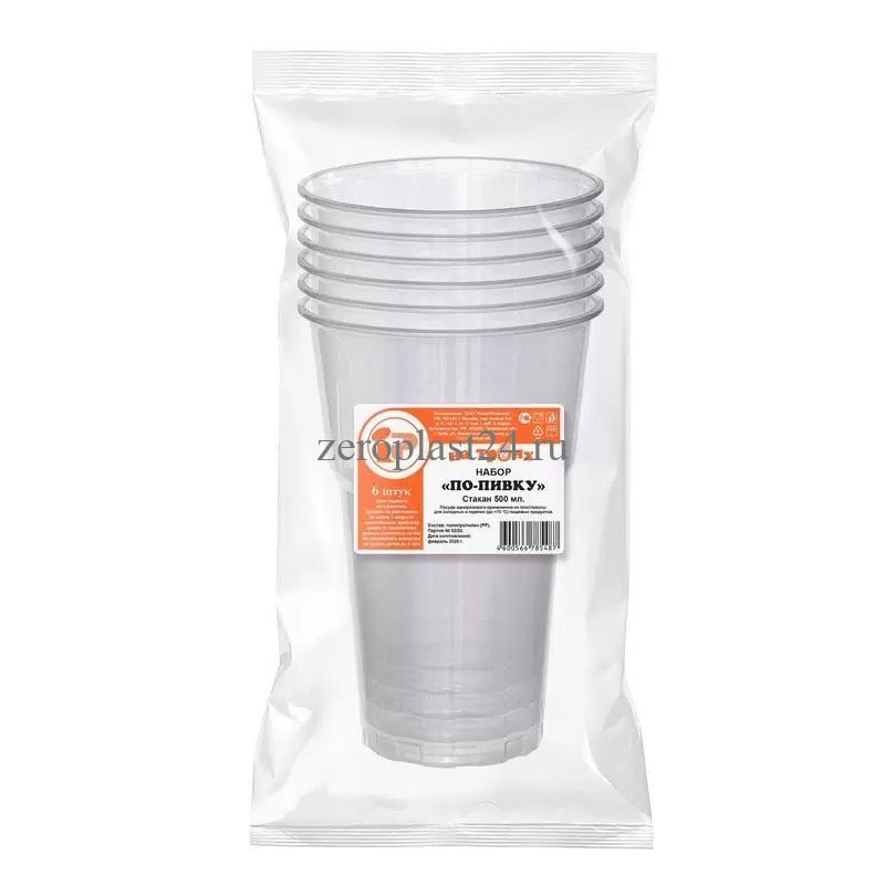 Стакан 500 мл прозрачный, 6 шт. Набор "По-пивку" 1/75