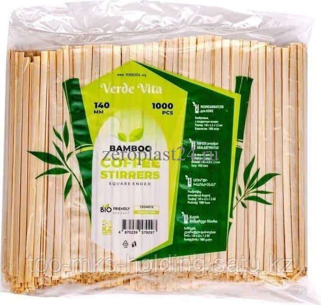 Размешиватели для напитков бамбуковый 140*4.5*1.3 мм 1000 шт/уп,