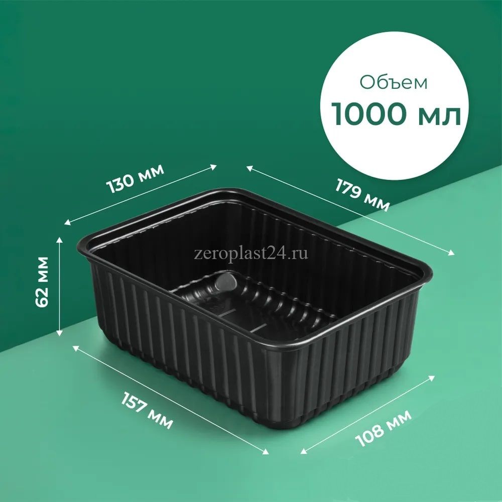 1000 мл. Контейнер низкий (179*132/64 мм) Черный 1/50 Без крышек