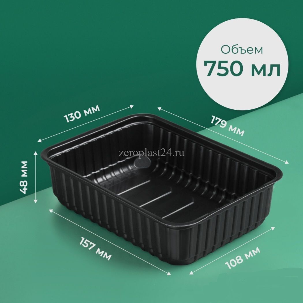 750 мл Контейнер низкий ЧЁРНЫЙ (179*132/46 мм) 1/50 Без крышек Д-полимер