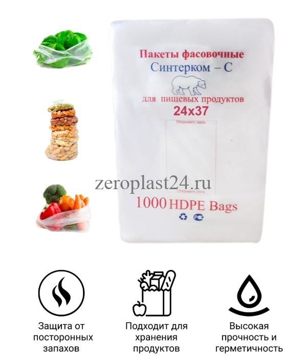 Пакеты фасовочные 24*37, ПНД, для хранения продуктов, Евро блок, 8мкм, 1000 штук ZP