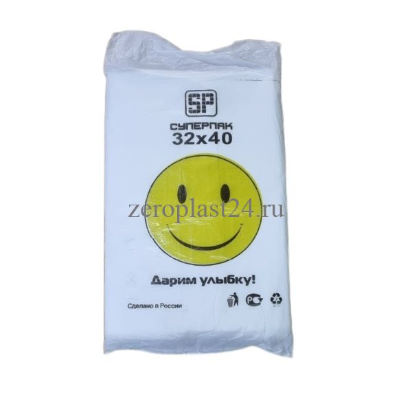 Пакеты фасовочные 32*40, ПНД, для хранения продуктов, Евро блок, 11мкм, ПНД, (900 г) Смайлик
