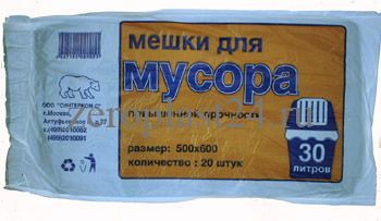 Мешки 30 л для мусора повышенной прочности 50*60 см 20 шт 1/50 Синтерком