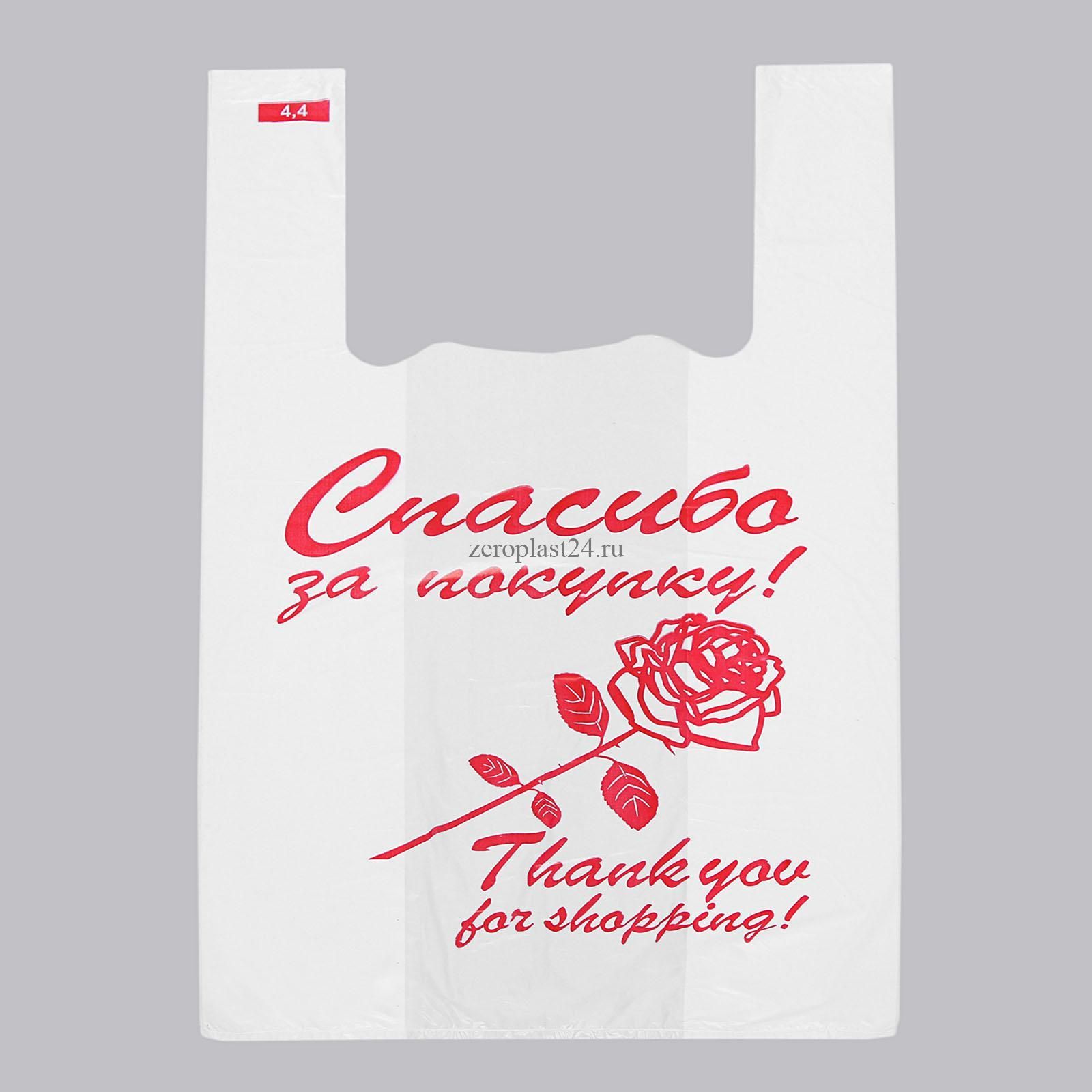 Пакет майка "28+16х50" ПНД (12мкм) СПАСИБО ЗА ПОКУПКУ, белая 1/100 штук