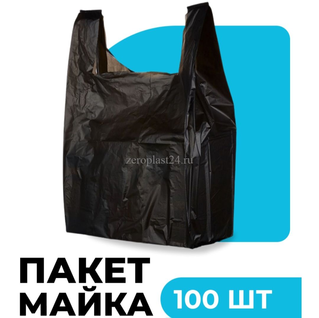 Пакет-майка «Черная без рисунка» размером 30*55 см изготовлен из полиэтилена низкого давления толщиной 18 микрон.