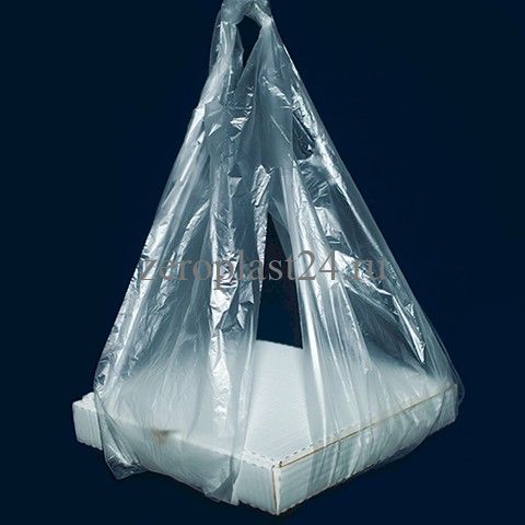 Полиэтиленовый пакет для транспортировки коробок с пиццей, пирогами, с тортами и прочей квадратной или прямоугольной транспортной тарой имеют специальные формованные прорези для углов коробок. Такая конструкция предотвращает прорывы и проколы пакета краями коробок или контейнеров, позволяет зафиксировать коробку с продуктом в горизонтальном положении. Пакеты имеют удобные цельнокроеные ручки для переноса. Позволяют переносить от одной до нескольких плоских коробок или одну для торта.