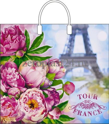 Пакет 38х35 "Туп-де-франс" ламинированный с пластиковой ручкой 90 мкм Интерпак 10/100