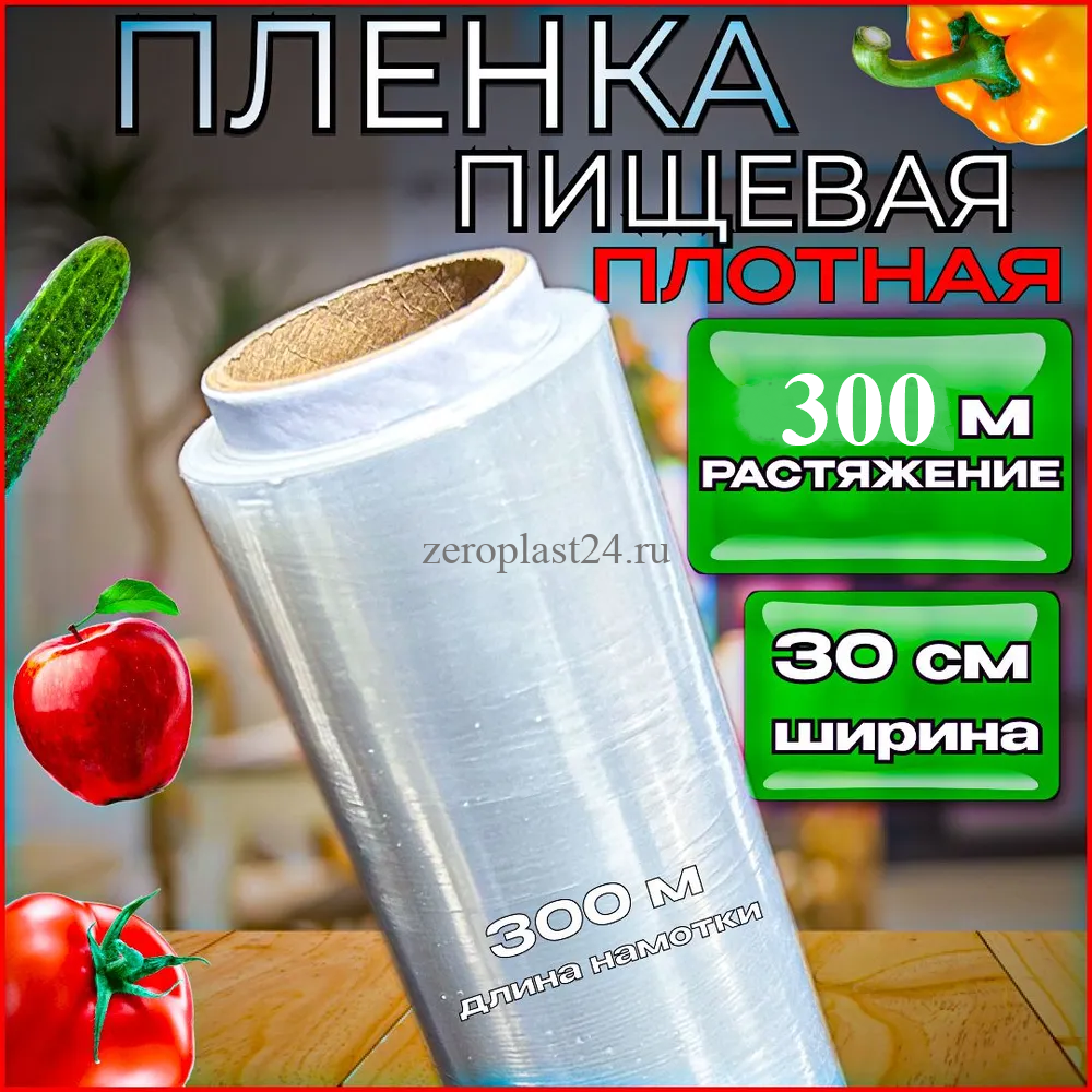 Пищевая пленка производится из экологически безопасного полиэтилена, имеет толщину 7,5 мкм. Стрейч-пленка при растяжении надежно прикрепляется к поверхности, предназначена для однократного использования. Рекомендуется для бытового использования, в столовых и прочих заведениях общественного питания для хранения готовых блюд и полуфабрикатов, подготовки порций к продаже, предохранения продуктов питания от заветривания. Поставляется в рулоне, длина пленки — 300 м, высота слоя — 30 см.