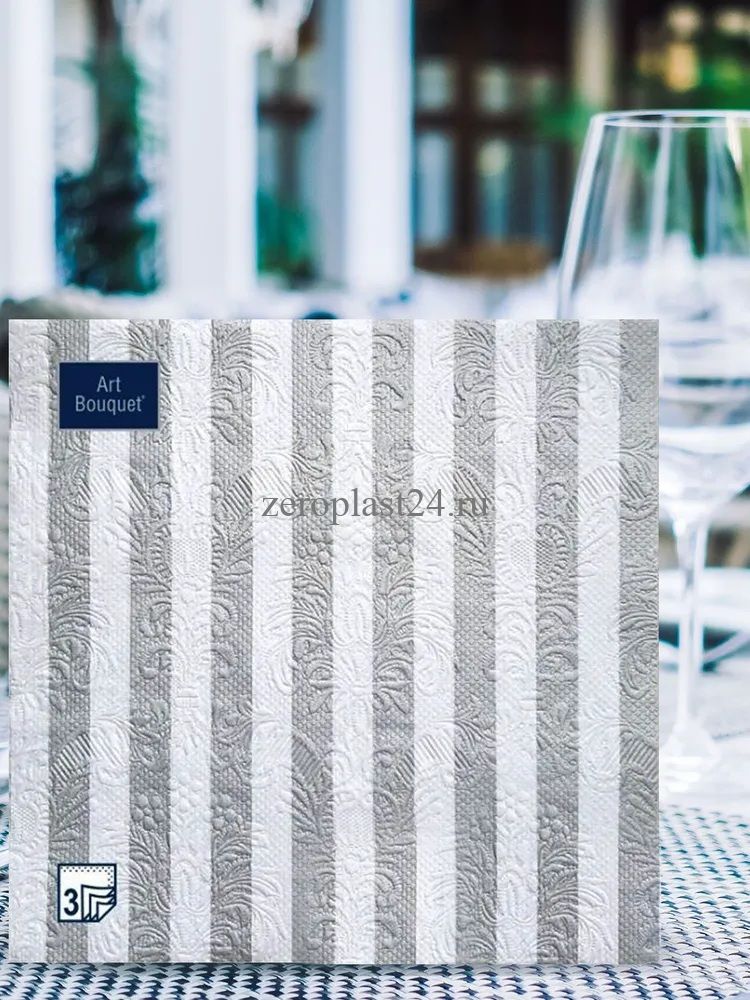 Салфетки бумажные 33*33см, 3сл, 16шт, Полосы Серебряные Барокко (37870 из короба 1/12)