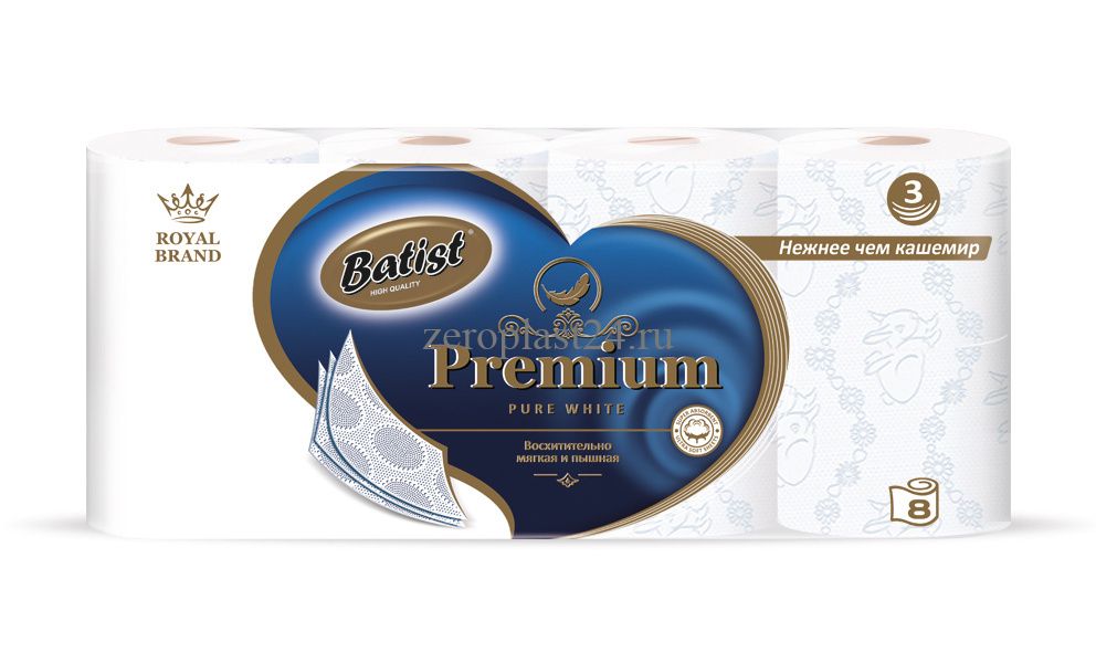 Туалетная бумага "BATIST" 8 шт. 3-сл. белая Немецкое качество 1/6