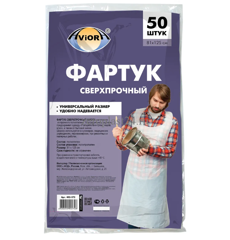 Сверхпрочный фартук AVIORA изготовлен из прочного полиэтилена, благодаря чему надёжно защищает одежду от воздействия грязи, влаги, жиров, бытовой химии, лакокрасочных материалов. Используется в медицинских учреждениях, парикмахерских, салонах красоты, на кулинарных производствах, а также при проведении ремонтных и малярных работ