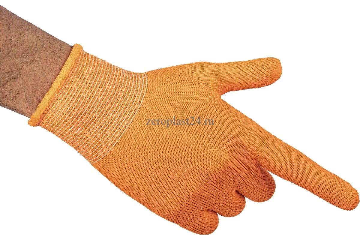 Перчатки из синтетической нити с ПВХ точкой, цвета «Оранж», 13 класс вязки, размера L, применяются для защиты рук от царапин и ссадин. Они станут незаменимым помощником при осуществлении строительных, ремонтных, садовых и других работ. Плотная ткань из тонких синтетических нитей сохраняет высокую чувствительность пальцев, что особенно актуально при проведении точных работ. Преимущества: Нейлоновые нити — перчатки гипоаллергенны, обладают высокой устойчивостью к истиранию и пропускают воздух, поэтому в них удобно работать. Эластичные манжеты — перчатки надежно фиксируются на запястье и не спадают. Точечное ПВХ-покрытие — инструменты не будут выскальзывать из рук.