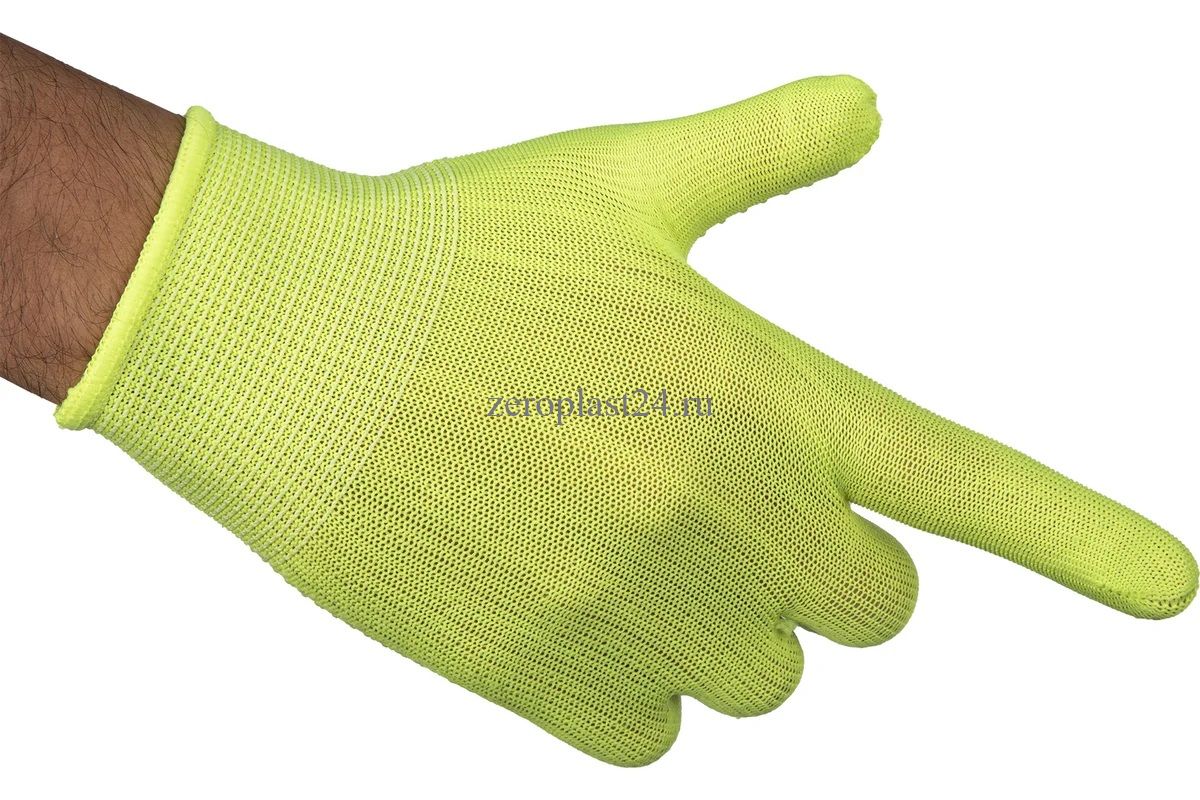 Перчатки из синтетической нити с ПВХ точкой, цвета «лимон», 13 класс вязки, размера L, применяются для защиты рук от царапин и ссадин. Они станут незаменимым помощником при осуществлении строительных, ремонтных, садовых и других работ. Плотная ткань из тонких синтетических нитей сохраняет высокую чувствительность пальцев, что особенно актуально при проведении точных работ. Преимущества: Нейлоновые нити — перчатки гипоаллергенны, обладают высокой устойчивостью к истиранию и пропускают воздух, поэтому в них удобно работать. Эластичные манжеты — перчатки надежно фиксируются на запястье и не спадают. Точечное ПВХ-покрытие — инструменты не будут выскальзывать из рук.