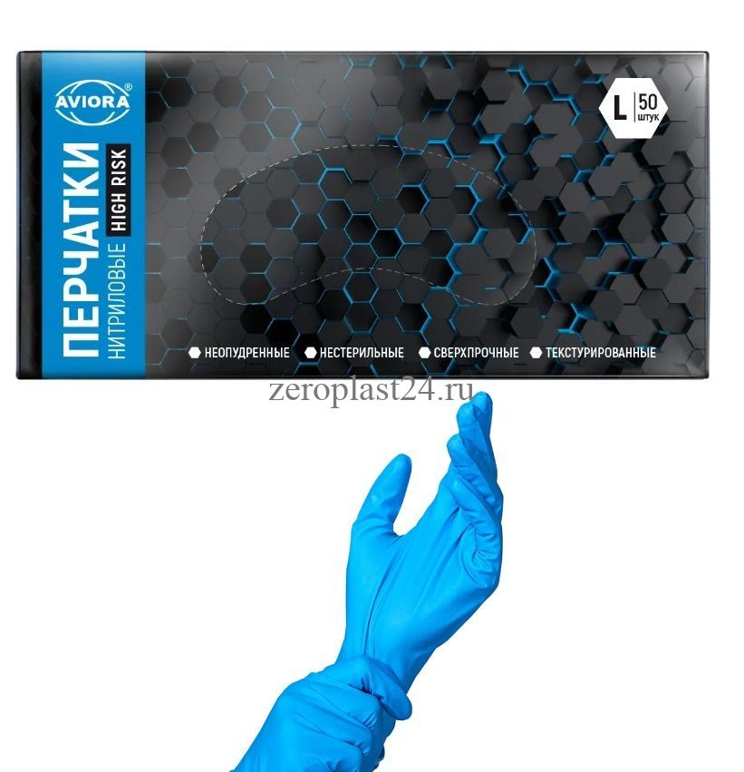 Перчатки нитриловые HIGH RISK, размер L, 50 шт. в уп., AVIORA