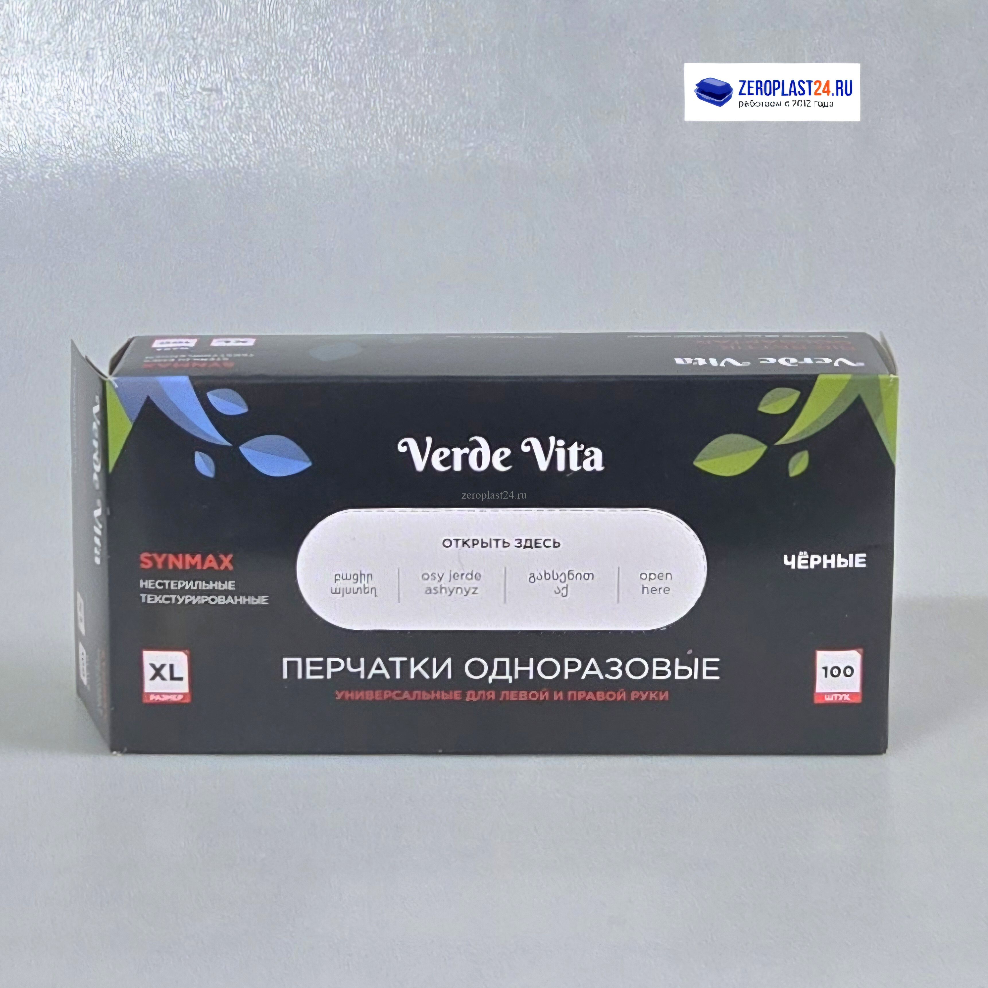 Перчатки Нитрил-Винил VERDE VITA, неопудренные нестерильные Черные Размер XL 100 штук