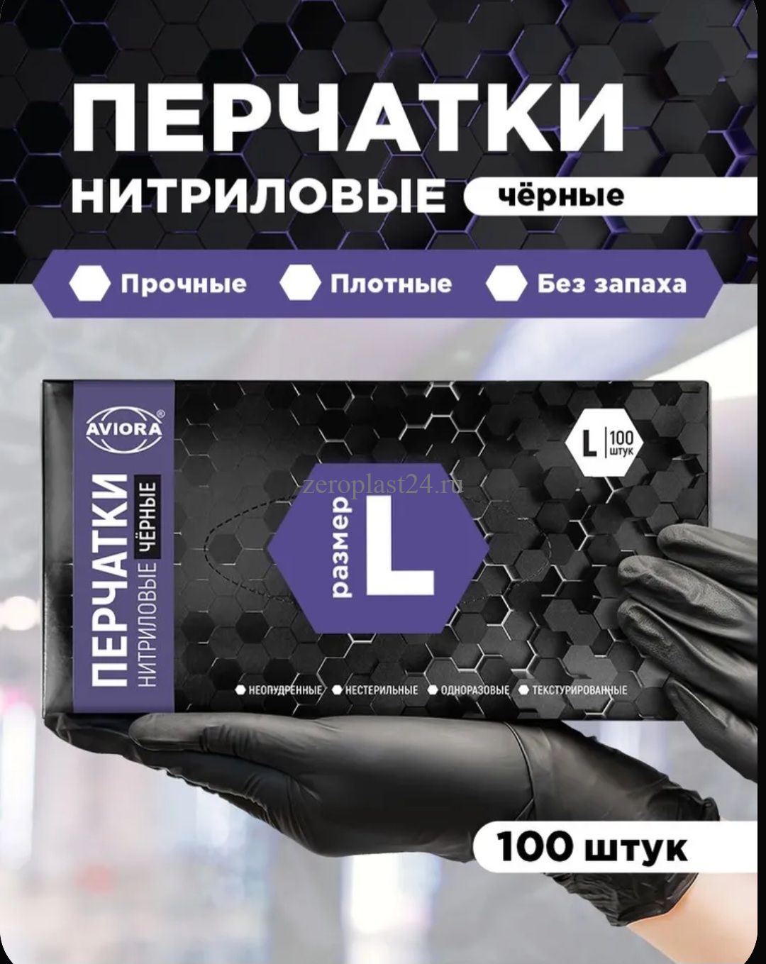 Перчатки нитриловые,черные размер L 100 шт. в уп., AVIORA
