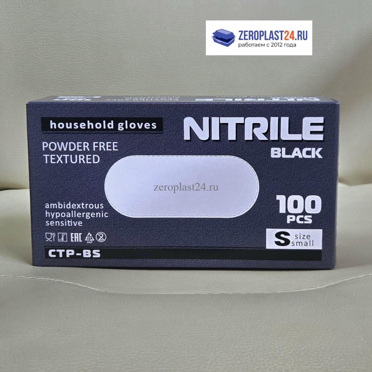 Перчатки нитриловые черные размер S, 100 шт. в уп СТР