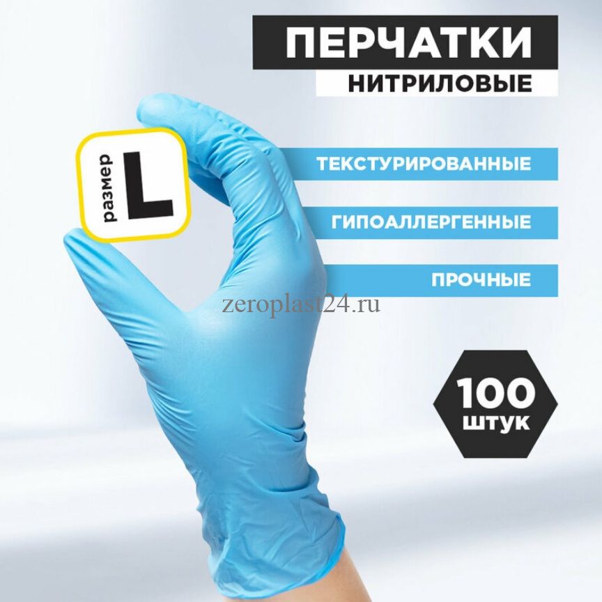 Перчатки нитриловые,голубые размер L, 100 шт. в уп., AVIORA