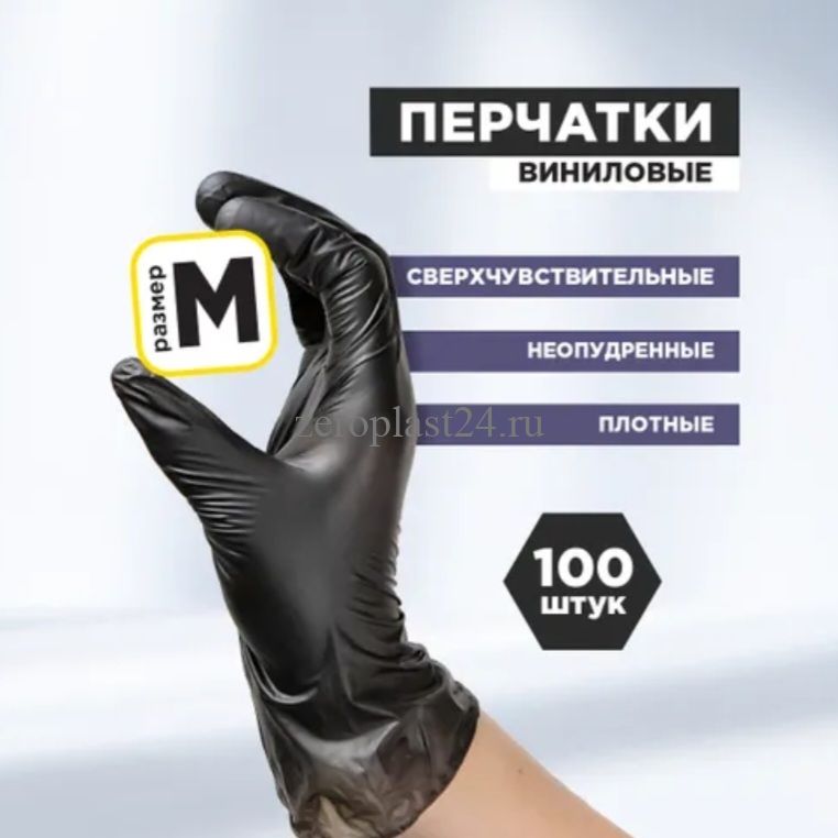 Перчатки виниловые, черные, неопудренные, одноразовые, размер M, 100 шт. в упаковке, AVIORA
