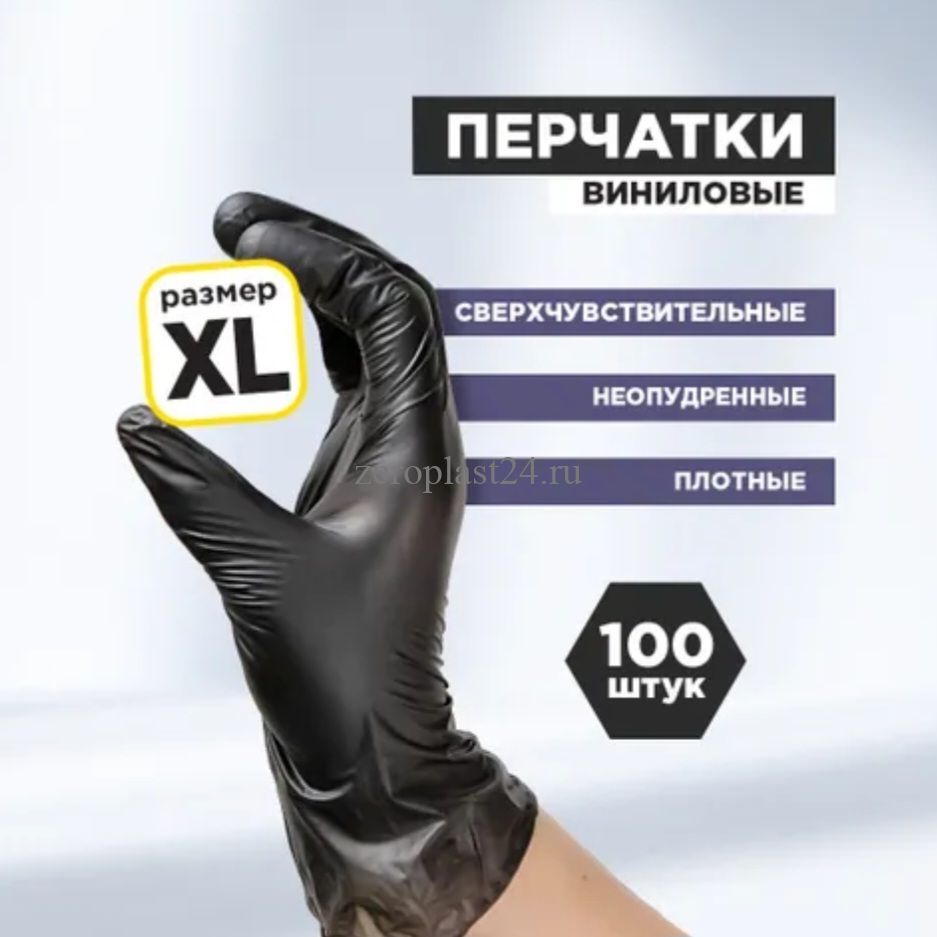 Перчатки виниловые, черные, неопудренные, одноразовые, размер XL, 100 шт. в упаковке, AVIORA