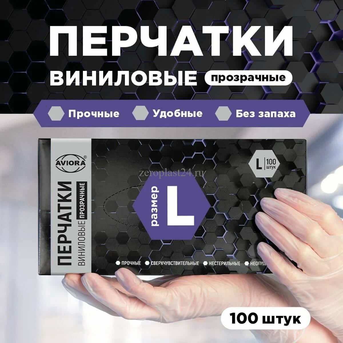 Перчатки виниловые, неопудренные, одноразовые, размер L, 100 шт. в упаковке, AVIORA