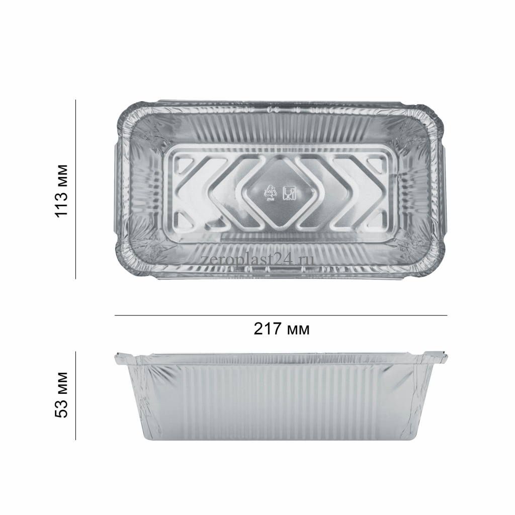Форма алюминиевая прямоугольная, 865мл, 217x113x53мм (402-677) 100 шт/уп + Крышка картон-мет. для ал. формы 402-677 (402-713) 100 шт/уп