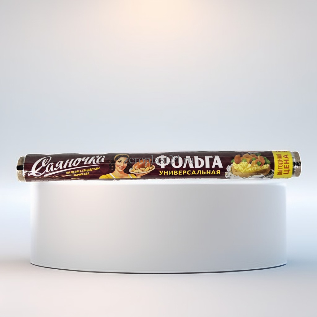 Пищевая алюминиевая фольга является удобным материалом для запекания и хранения продуктов: обладает прочностью, жаростойкостью, непроницаема для влаги и жира, сохраняет свежесть и качество продуктов в течение длительного времени, а также не накапливает посторонние запахи и пыль. Фольга является разлагаемым материалом, который легко утилизируется (например, закапыванием в почву). Продается в рулоне шириной 29 см, общая длина рулона — 10 м. Плотность — 9 мкм