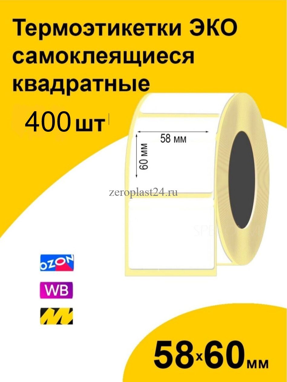 Самоклеящиеся термоэтикетки 58×60 мм. без печати 400 этикеток в рулоне