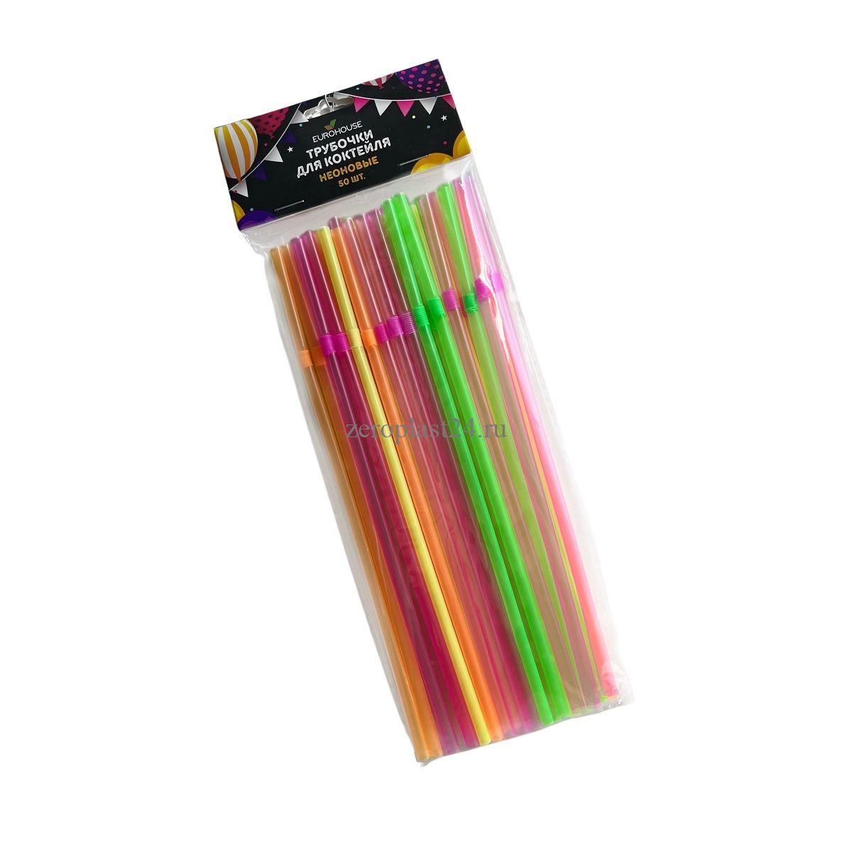 Трубочка для коктейля EUROHOUSE 5х210 мм, с изгибом, неоновые, 50 шт. в упаковке 16433