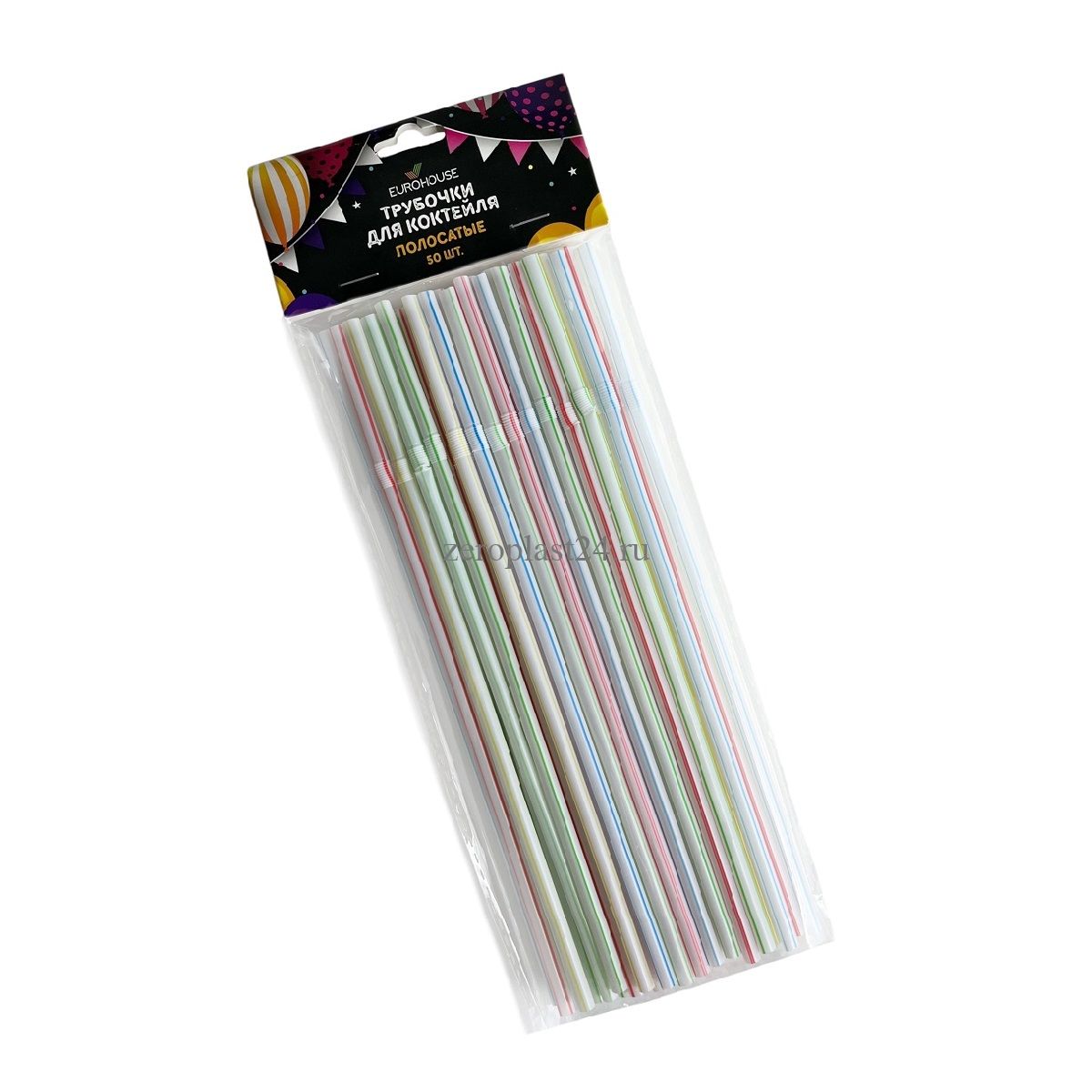 Трубочка для коктейля EUROHOUSE 5х210 мм, с изгибом, полосатая, 50 шт. в упаковке 16432