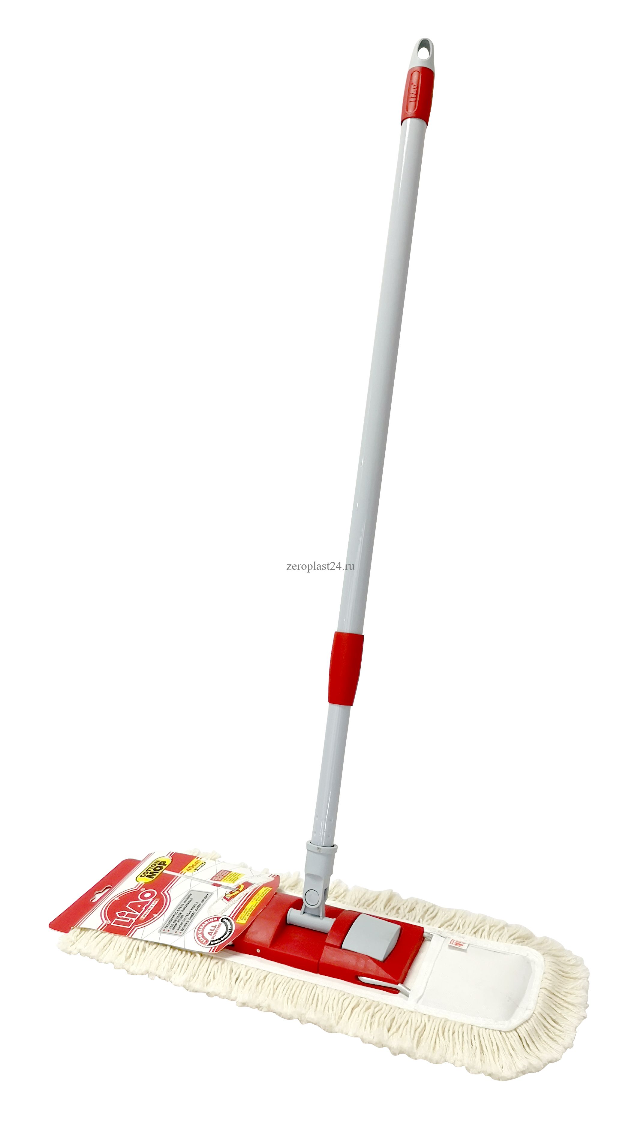 Швабра с насадкой из хлопка предназначена для проведения сухой и влажной уборки помещений