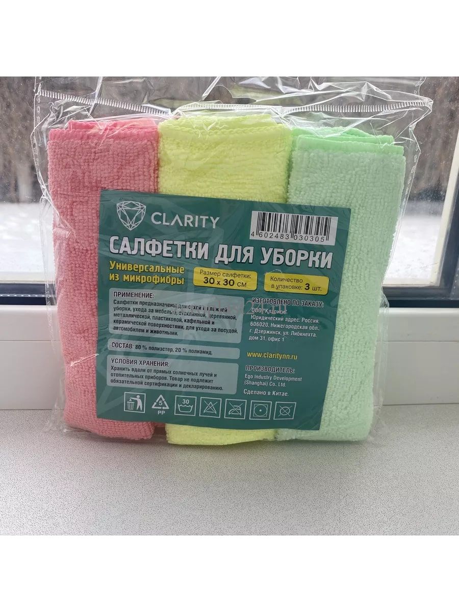 Салфетки из микрофибры 3 шт. 30*30 см 230 гр/ м2 Кларити